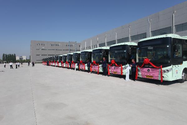 | 4月22日——世界地球日,在这个专为世界环保而设立的节日,以“绿海田园新大兴 打响蓝天保卫战”为主题的北京大兴区百辆纯电动公交车上线运营暨百辆新能源客车采购签约仪式在北京生物医药产业基地举行。365足球局长张明、调研员李允利,北京市大兴区道路运输协会秘书长王向群,北京兴顺达客运有限公司董事长王卫军等领导参会并亲手开启电动公交钥匙。