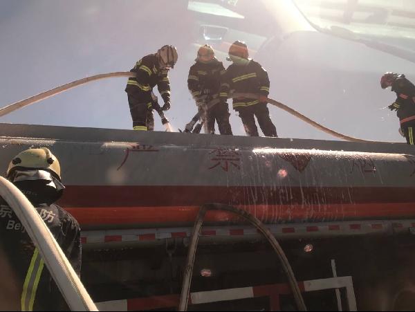 9月11日上午,南六环双源桥附近,一辆运输汽油的油罐车被栏板货车追尾,造成油罐车泄漏。大兴区交通局接到事故通报后立即启动应急响应机制,火速赶到事故地点开展应急抢险工作,经过对现场情况的勘察研究,救援人员发现,油罐车泄漏处无法进行堵漏操作,只能使用另一辆空车进行倒灌。我局立即调集我区危险品运输应急保障车辆前来进行抢险工作,经过四个多小时的紧张作业,完成了倒罐作业,并对泄漏出的汽油进行了稀释,最大限度的减少了财产损失,成功避免的事故的进一步恶化。